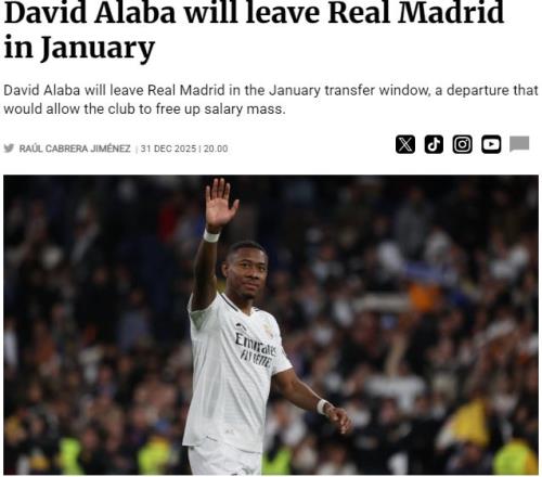 皇马冬窗离队第2人浮现!美国球队150万报价阿拉巴