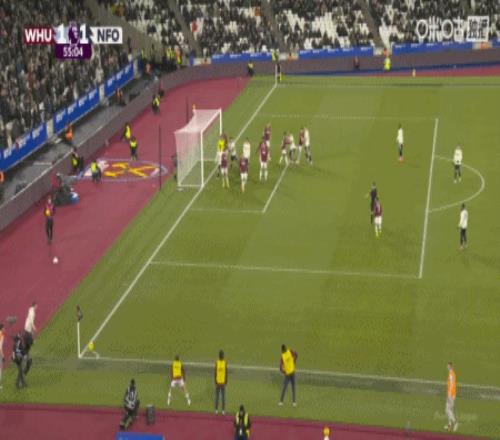 然而领先后,西汉姆联却迟迟无法扩大优势,反而被森林队多次威胁球门。第42分钟,奥多伊左路内切兜射远角,皮球击中横梁弹出,西汉姆联逃过一劫。