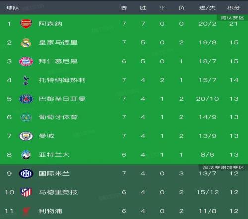 这7场比赛枪手一共打进了7球,仅仅丢掉2球,攻防两端展现了强大的实力。国米遭遇赛季第3场败仗,12个积分已经跌出了前八名,暂列第9名。西甲皇马皇马主场3-1大胜摩纳哥,姆巴佩梅开二度,维尼修斯一人造了4球,打进1球送出2次助攻,而且造了乌龙球。这一场胜利让皇马以15分上升到积分榜第二名,但是落后枪手6个积分。