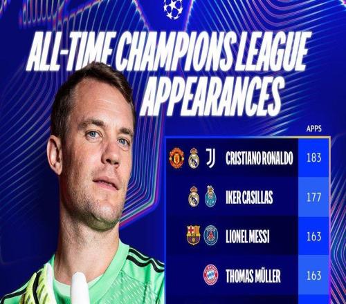 152场追平本泽马,诺伊尔升至欧冠历史出场榜第五