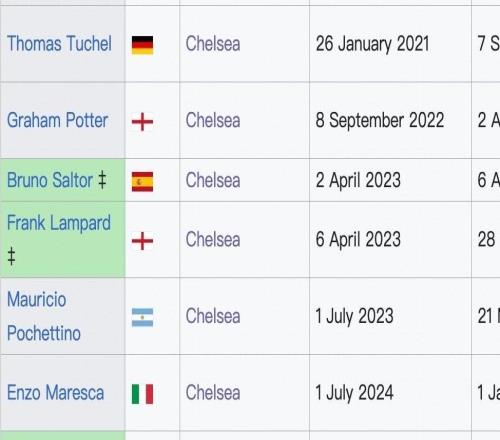 自21年欧冠夺冠以来,罗塞尼尔是切尔西5年来任命的第5位主帅 -