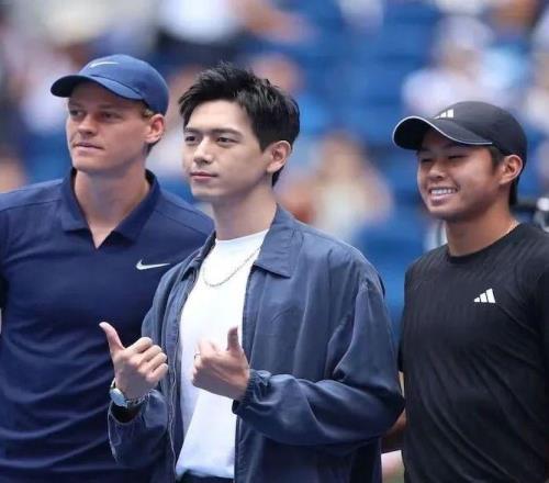 演员李现为中网男单决赛挑边,并与辛纳和勒纳钱合影留念