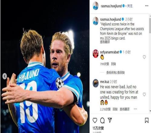 两位前曼市球员联手制造2个进球,霍伊伦:从未想过有这样的剧情