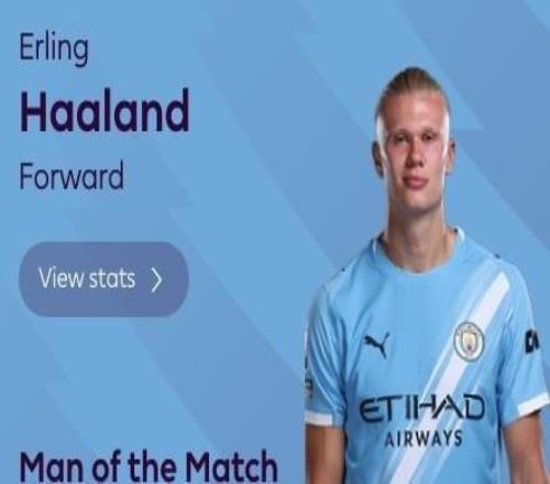 达成英超百球里程碑,哈兰德当选富勒姆vs曼城全场最佳球员 -